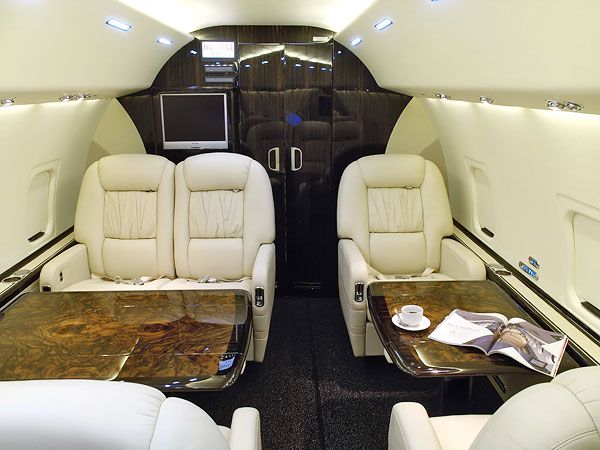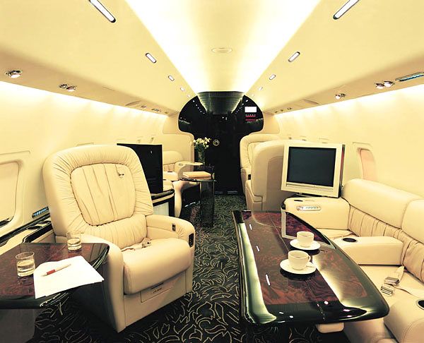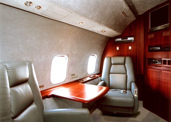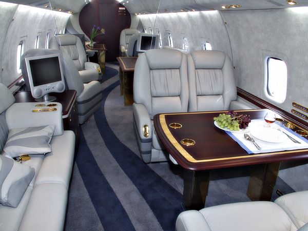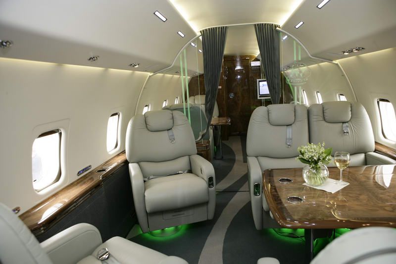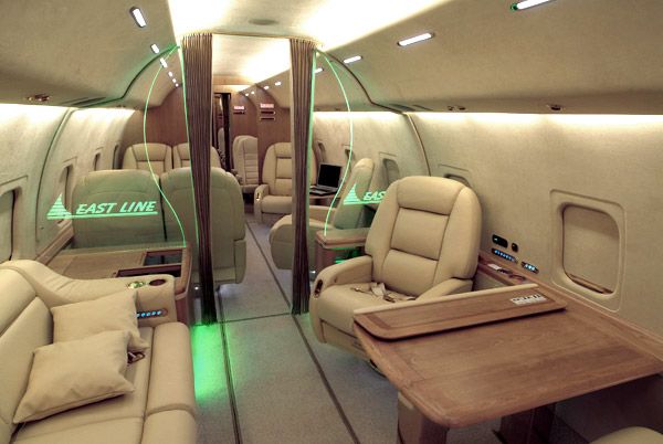 Внутреннее пространство воздушного судна разделено на отдельные зоны: два комфортных VIP салона предлагают «клубное» размещение: 8 кресел и трех -местный диван. Два салона для сопровождающих лиц, две кухни, два туалета – такова компоновка самолета, предназначенного для перелетов с 39 пассажирами на борту.